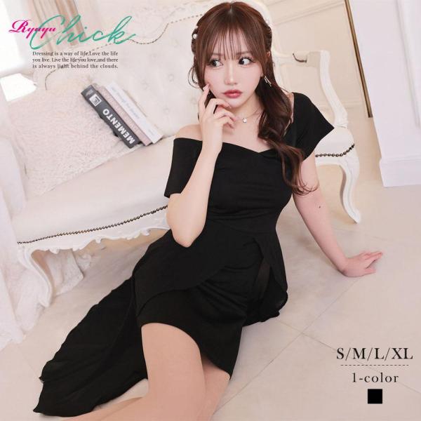一部予約販売 メール便対応 キャバ ドレス キャバドレス ミニ パーティードレス セクシー 韓国ドレス RyuyuChick オフショル 黒 プチプラ