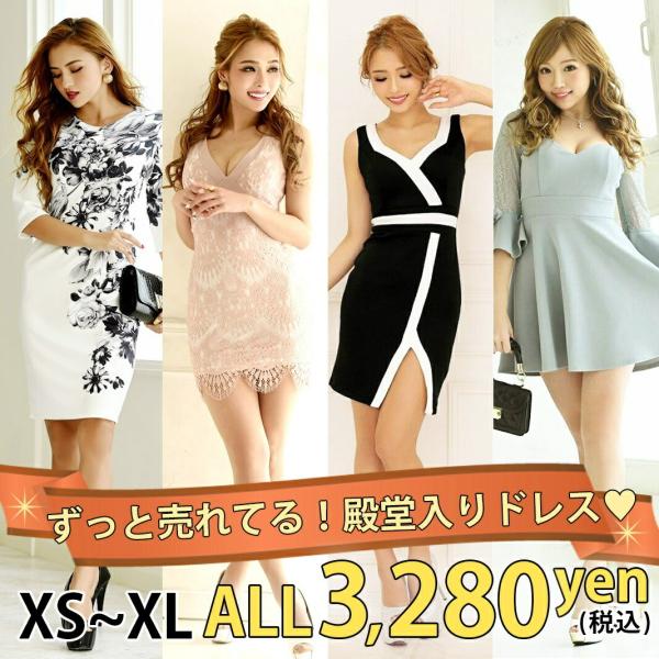キャバドレス キャバ ミニ パーティードレス ワンピース 大きいサイズ XL XS タイト Aライン 膝丈 長袖 袖付き 安い プチプラ 韓国 選べる