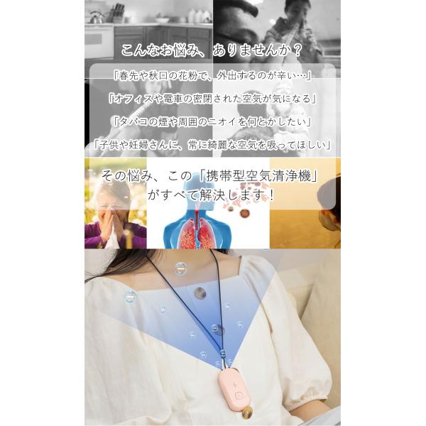 空気清浄機 首掛け マイナスイオン 発生器 小型 ポータブル 携帯用 タバコ 煙 除菌 花粉症 対策 ウイルス除去 PM2.5 除去 静音 超軽量 30g 持ち運び 子供 大人