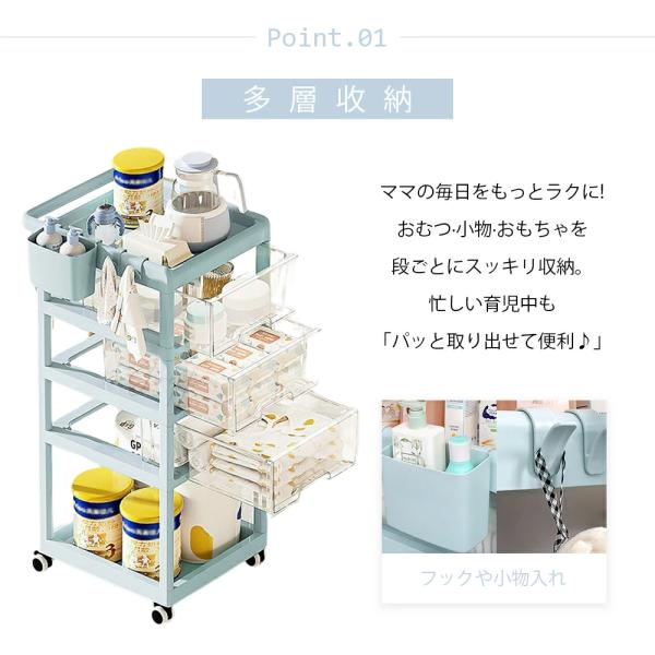 ワゴン キャスター付き ストッパー 取っ手付き キッチンワゴン 蓋 3段 4段 子供部屋収納 おもちゃ収納 ベビー用品 ベビー用品収納 キッチン収納 収納 ワゴン