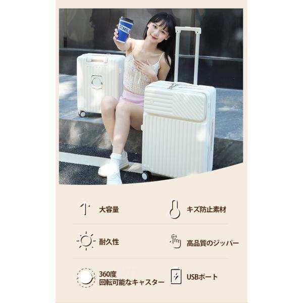 スーツケース 機内持ち込み カップホルダー 前開き トップオープン USBポート フック搭載 キャリーケース 大容量 小型 おしゃれ 人気 ビジネス 旅行 出張 ファスナー式 フロントオープン かわいい トップオープン