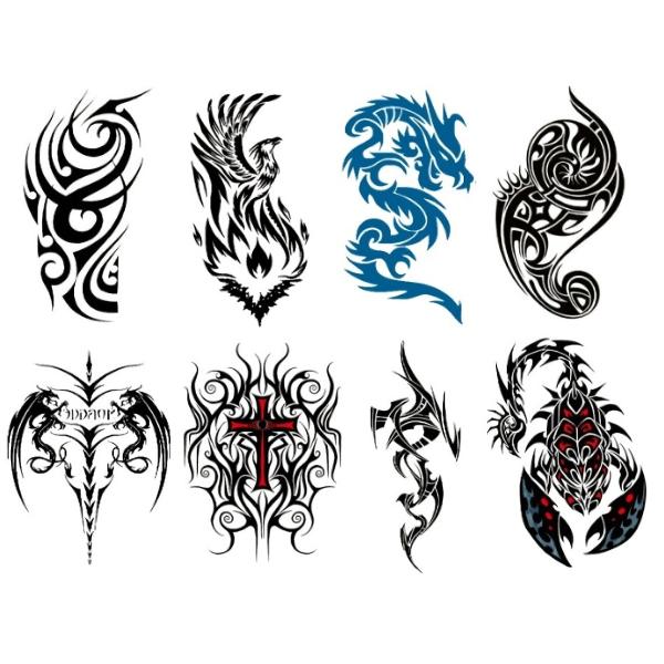 【1枚おまけ付】 タトゥーシール ステッカー ボディペイント 防水 サソリ 和柄 トライバル 15×21cm 8枚セット おまけ付 送料無料 A