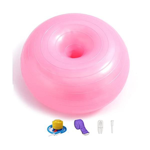 ドーナツヨガボール バランスボール 初心者 子供 大人 超耐荷重 フィットネスバンド フットポンプ付き ジム/ホーム/オフィスなどに適用 (ピンク)
