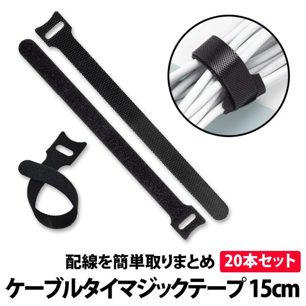 50%offクーポン有 結束バンド ケーブルタイ 20本 セット マジックテープ 長さ 15cm ケーブル ケーブル結束 収納 配線 まとめ タイラップ 充電ケーブル