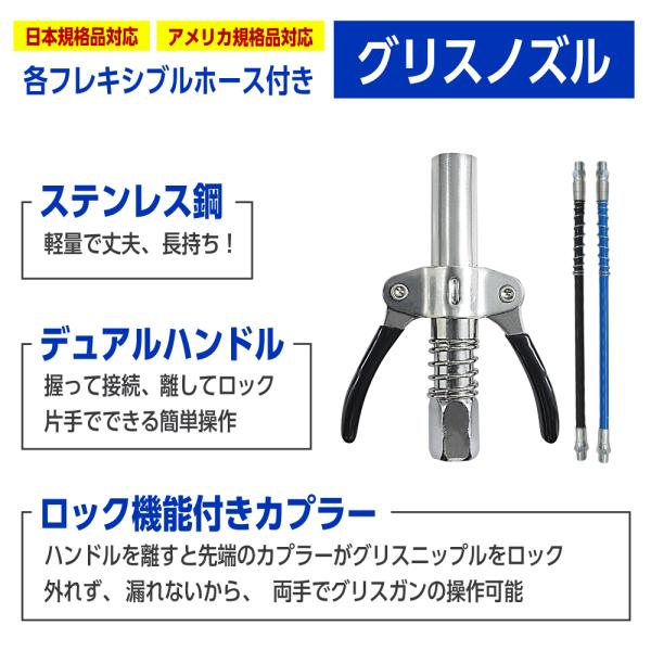 グリスガン グリースガン ノズル カプラー ホースセット ロッククランプ式 注油器 グリース注入器 ノズルヘッド グリスカプラー 車 バイク 爆買