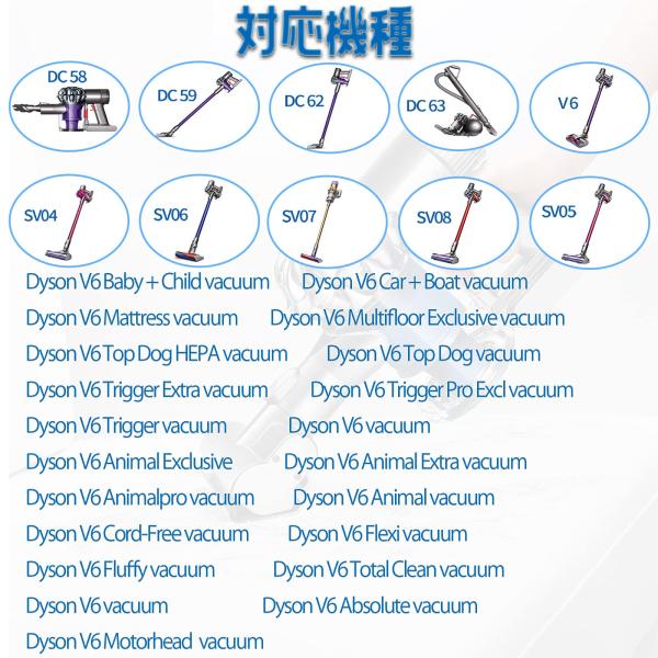 全シリーズ対応でDC58 DC59 DC61 DC62 DC72 DC74 V6 Fluffy V6 Animalpro V6 Mattress V6 Trigger V6 Motorheadなどに適合。