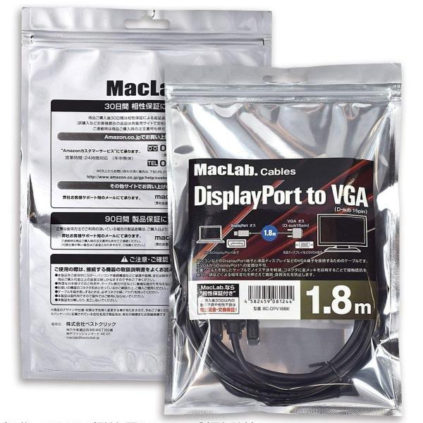 MacLab. Displayport - VGA 変換 ケーブル ディスプレイポート D-sub 15ピン 変換 アダプタ 1.8m ブラック 相性保証付き |L