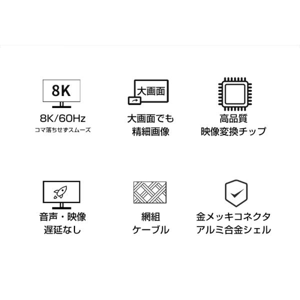 最大解像度:8K(7680×4320/60Hz)、4K(3840×2160/144Hz)、1080p(1920×1080/240Hz)
