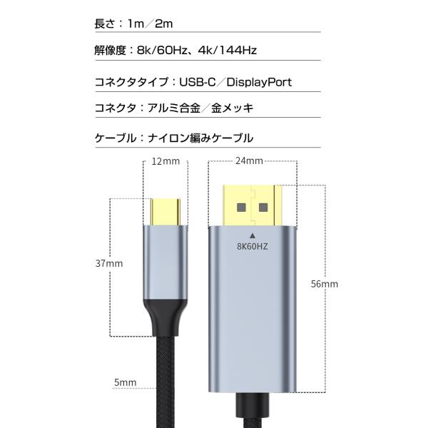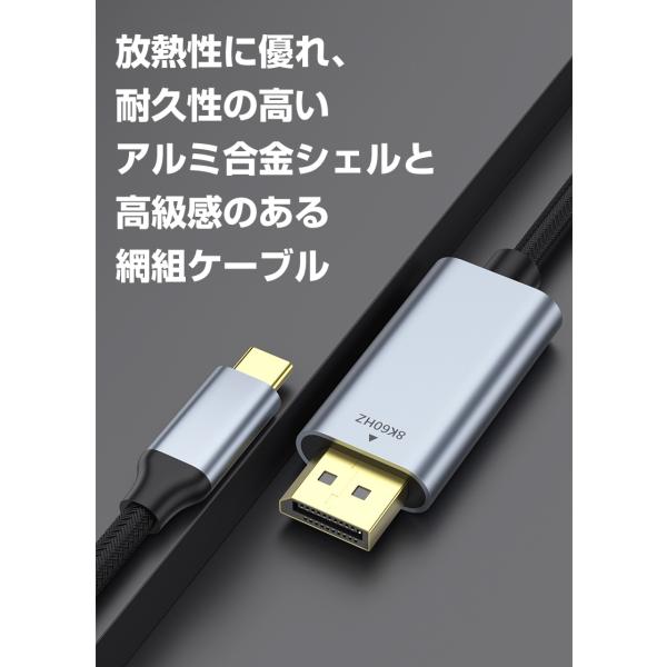 BestClick! USB Type-C Displayport 変換 ケーブル 2m HDR対応 Thunderbolt3/4 ゲーミング ディスプレイポート 2.0m DP オス MacBook Air Pro iMac mini |L