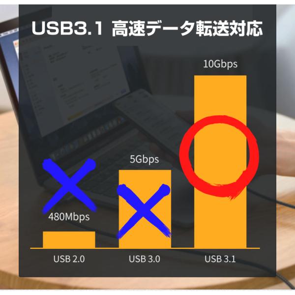 【高速データ転送】従来の480Mbpsや5Gbpsの転送速度とは比較にならないくらい高速の10Gbps対応。(USB3.1 Gen2)