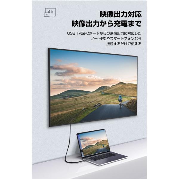 【高解像度映像出力】USB Type-C映像入出力に対応したPCやモニターを接続して、4K60Hzの高解像度映像を映すことが可能です。