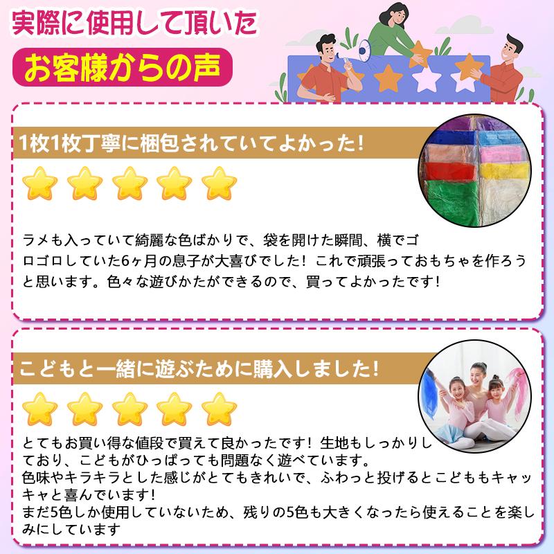 【特典付き】リトミックスカーフ スカーフ 大判 シフォン ジャグリング シルクスカーフ 正方形 四角 浮遊 カラフル 子ども 老人 遊び リハビリ 運動 10色 10枚