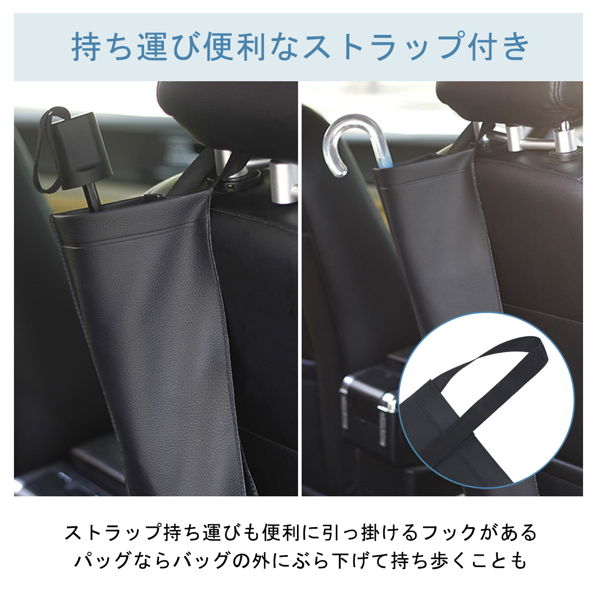 【車を濡れない】防水加工なので、雨の日の濡れた傘をさっと収納して、快適に車内でお過ごし頂けます。