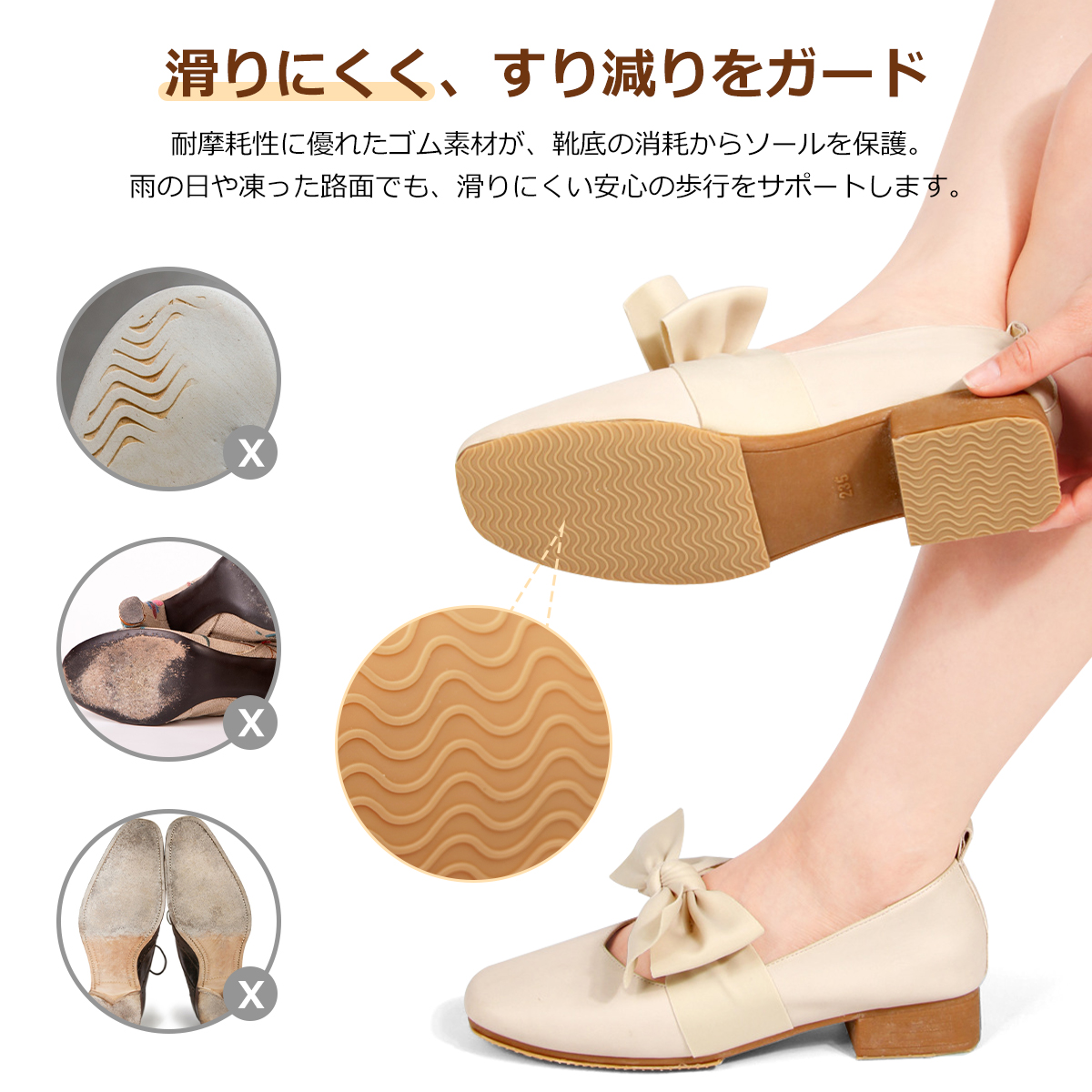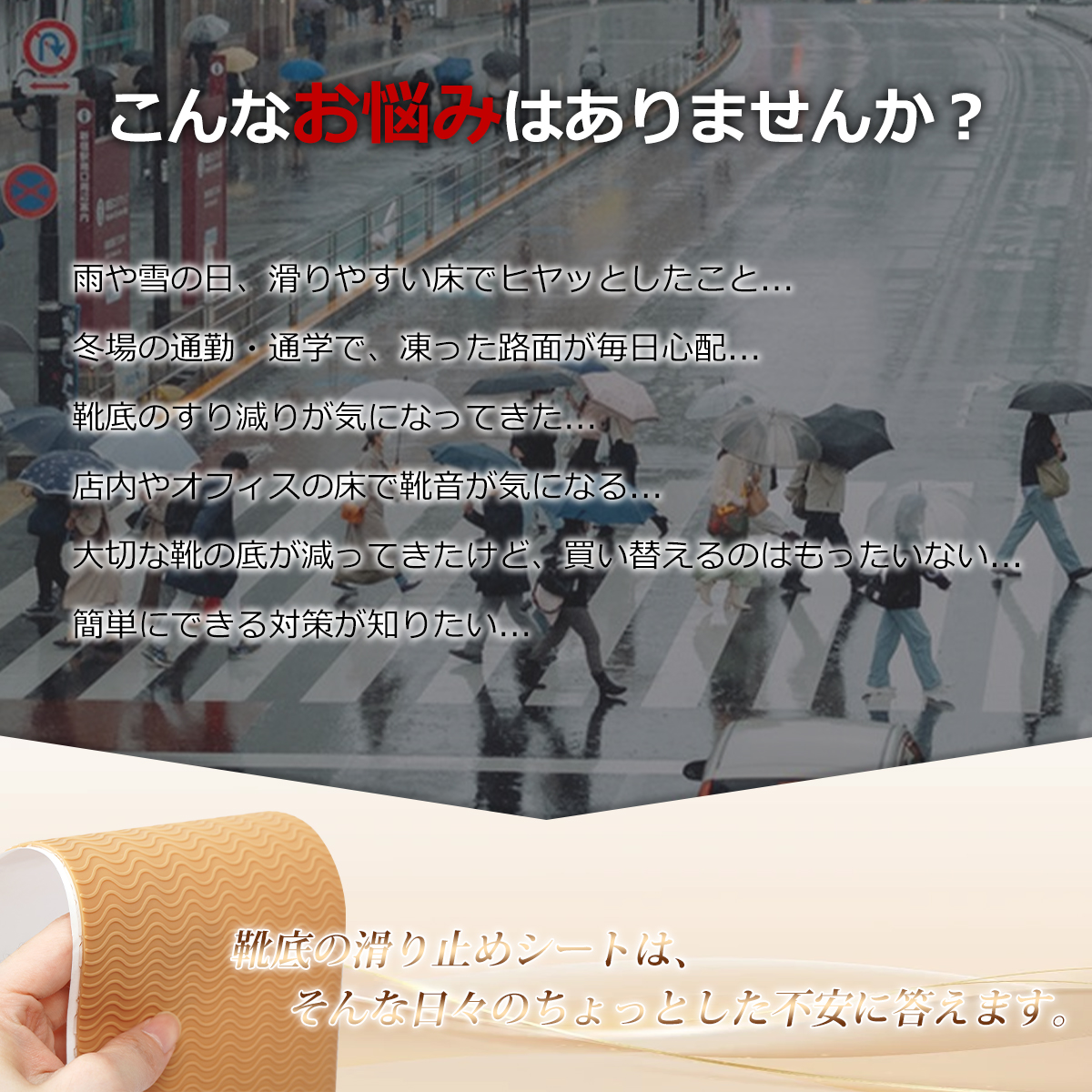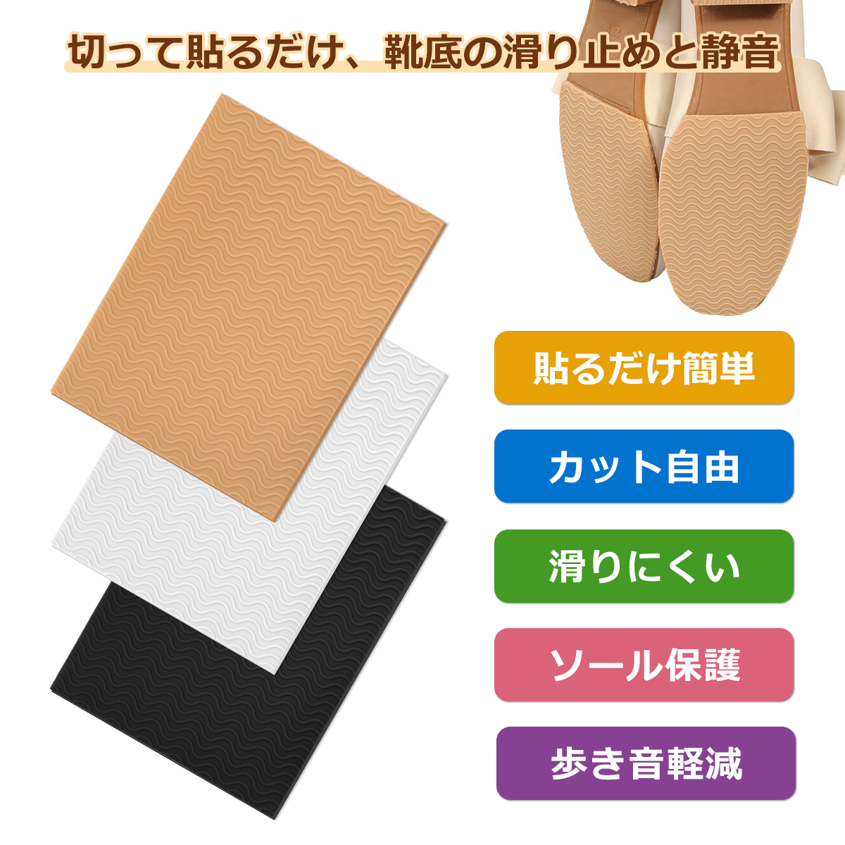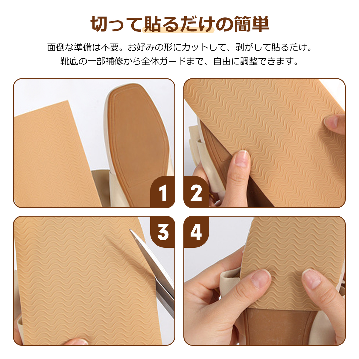 貼るだけ簡単DIY! カット自由の滑り止めシートで、大切な靴もあなたの歩みも守る。