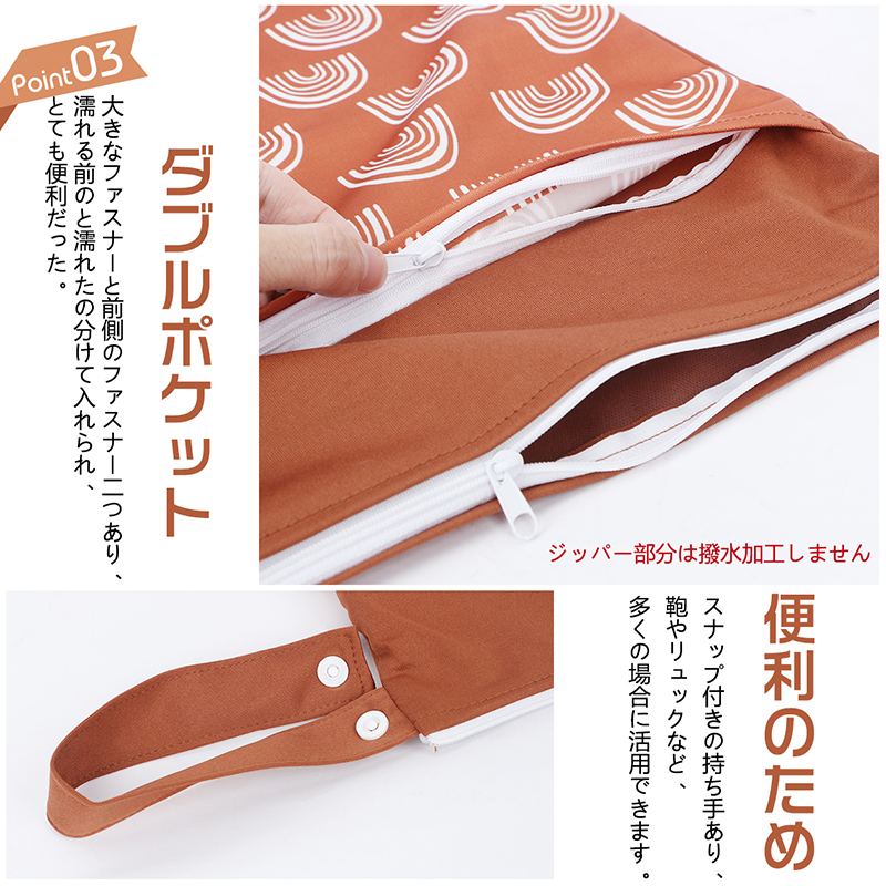 オムツポーチ 防水ポーチ 【ダブルポケット・撥水加工】 おむつポーチ 防水バッグ 洗える 防水 バック 袋 濡れた水着を入れる袋 水着入れ 汚れ物入れ 水着
