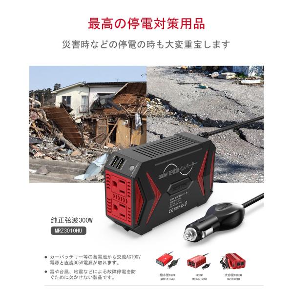 カーインバーター 正弦波 300W インバーター DC12V コンパクト 車載充電器 ACコンセント USB アウトドア MRZ3010HU BESTEK