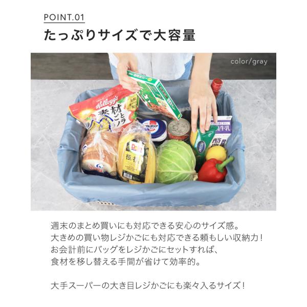 ●お会計前にバッグをレジかごにセットすれば、食材を移し替える手間が省けて効率的。
