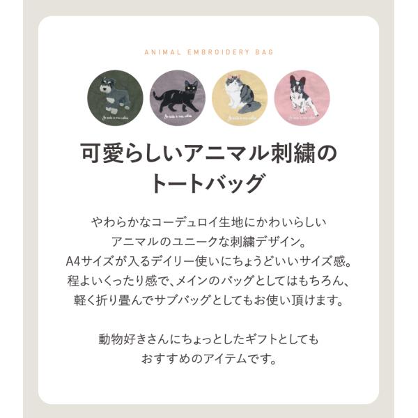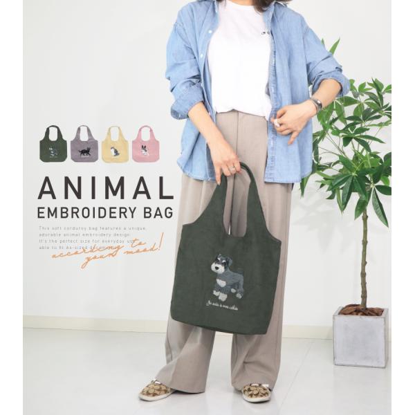 商品:アニマル刺繍トートバッグ かわいい 20代 デイリー かわいい お誕生日 コーデュロイトートバッグ お洒落