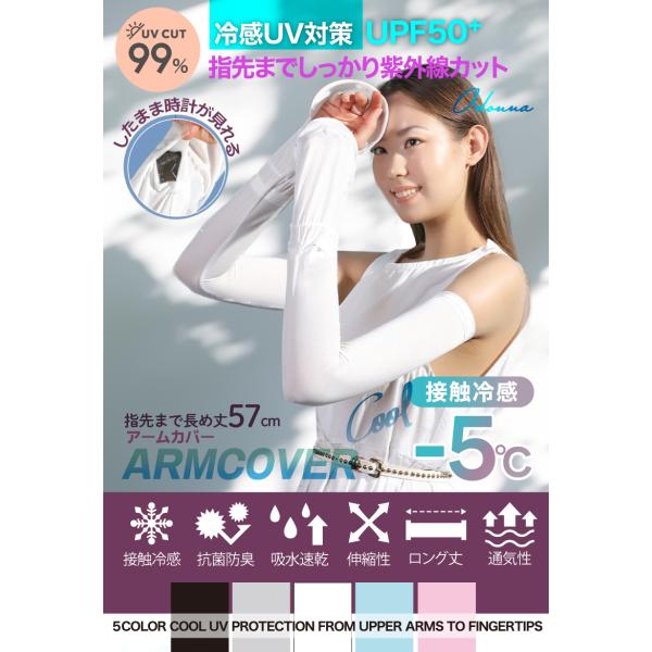 アームカバー uv 指先 冷感 UPF50+ uv対策 ロング丈 UVカット率99.9% ロング 接触冷感 uv手袋 持続冷感 日焼け防止 レディース 腕カバー UVカット 日焼け止め