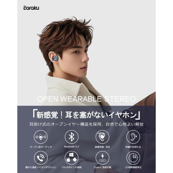 割引クーポンあり+P5倍 超軽量13g オープンイヤーイヤホン 空気伝導 耳を塞がないイヤホン Bluetooth 5.3 耳掛け ワイヤレスイヤホン 快適なフィット感 Earaku