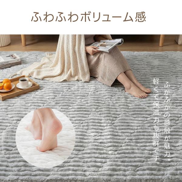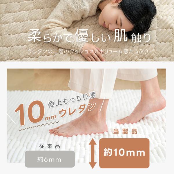 【二層のクッション構造】ラグの中材はふかふかのマイクロ中綿ともちもちのウレタンの二層のクッションでボリューム感たっぷり!