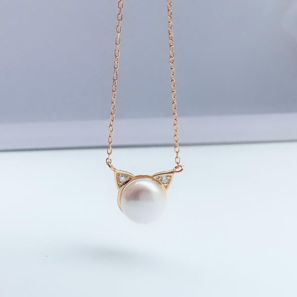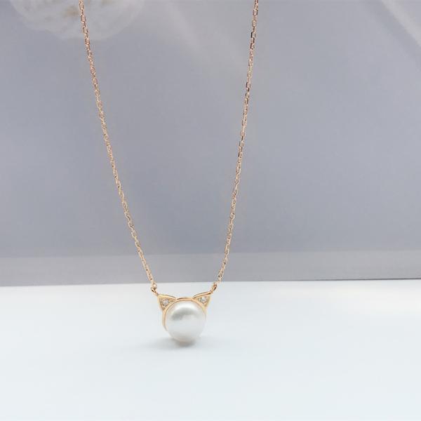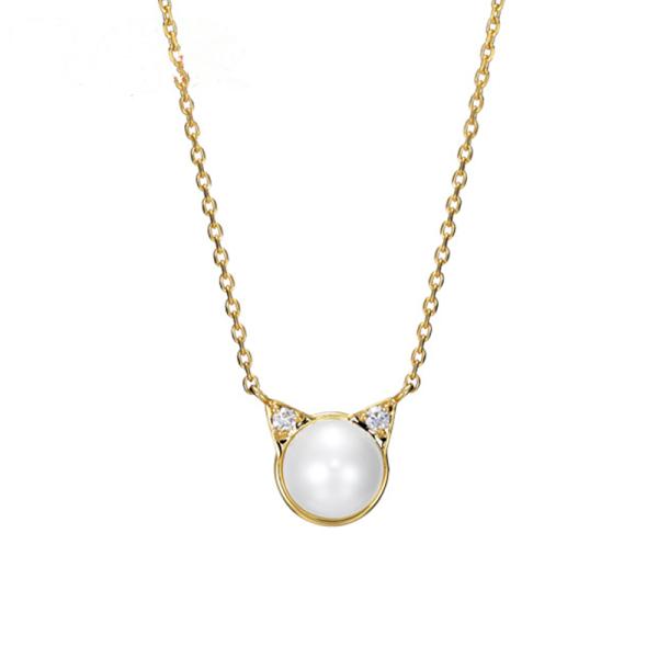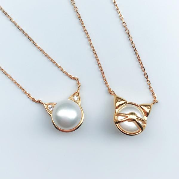 ネックレス レディース 猫 ねこ 天然 パール かわいい ダイヤ ゴールド シルバー925 プラチナ仕上げ 人気 記念日 誕生日 ホワイトデー プレゼント