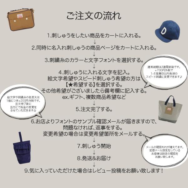 ※通常納期は3週間前後を目安にしておりますが、繁忙期によっては納期が遅れる場合、また一時的に刺繍の受付を一時停止する場合がございます。余裕を持ってのご注文をお願い致します。お急ぎの方はスピード仕上げ(1~5営業日以内発送予定)をご希望お願い致します。