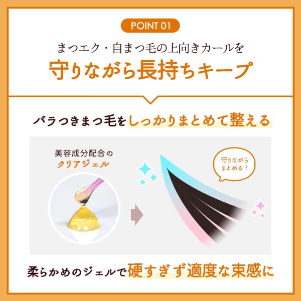 コラーゲンなどの天然植物成分を贅沢に配合。自まつ毛を健やかに保ち、潤いのある健康的な状態へ導くまつ育効果が期待できます。さらに、強力なまつ毛コーティング効果で、エクステやラッシュリフトをより長持ちさせます。