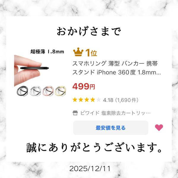 ●ヤフショ内 スマホリング レビュー件数 第1位