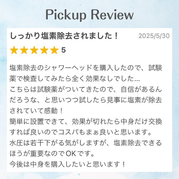 亜硫酸カルシウムを変更しました。これまでよりも小さい粒となり、塩素除去性能がアップしました。