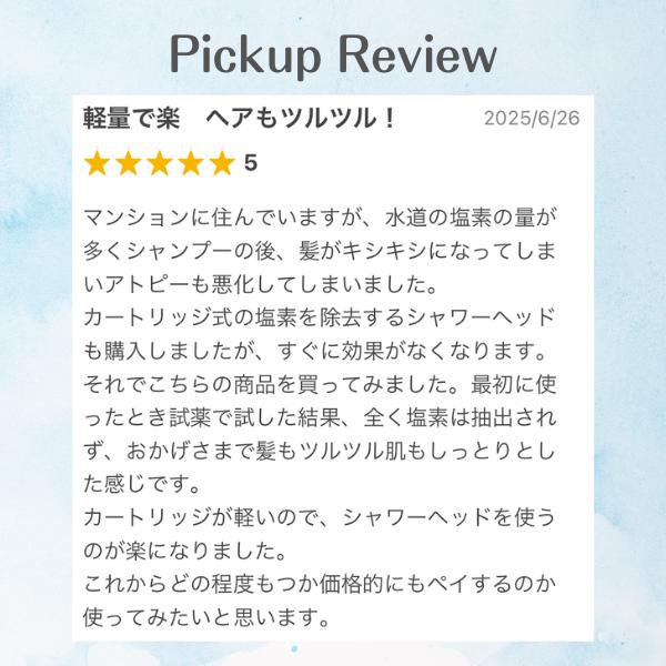カルキを取り除くことにより、肌当たりの柔らかいお湯となり、肌・髪へのダメージを軽減。