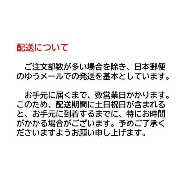 注2)ご注文部数が多い場合を除き、日本郵便のゆうメールでの発送を基本としています。お手元に到着するまで、数営業日かかります。