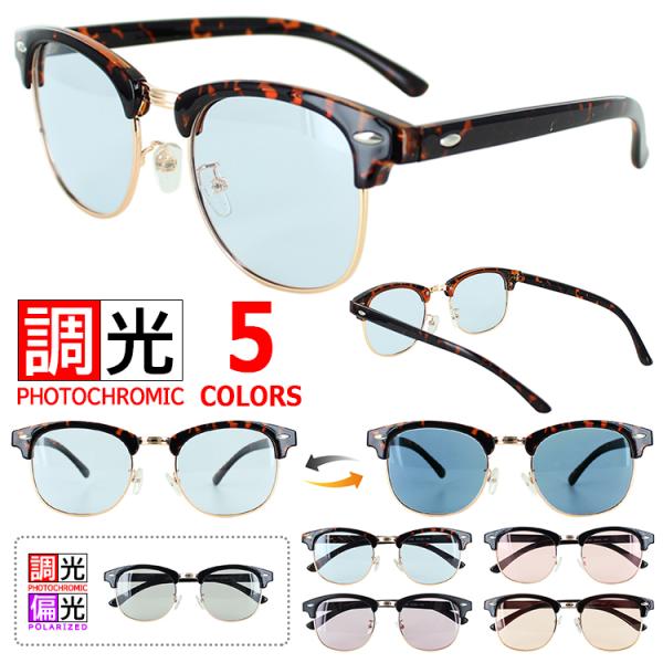 調光サングラス 偏光 調光 サングラス メンズ レディース UVカット おしゃれ ケース付き leid08c ライトカラーレンズ 軽量 サーモント コンビフレーム