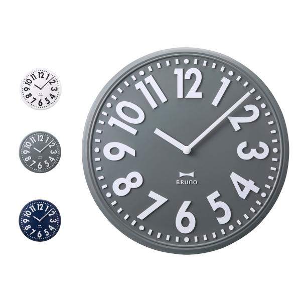 ブルーノ BRUNO 掛け時計 壁掛け時計 エンボスウォールクロック 静音 エンボス文字盤 連続秒針 ホワイト グレー ネイビー 白 BCW049