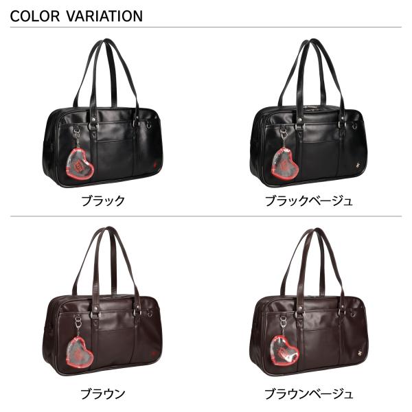 BEVERLY HILLS POLO CLUBのスクールボストンバッグは、通学にぴったりのシンプルで機能的なデザイン。A4サイズ対応のメインルームは教科書やノート、部活用品などの荷物をしっかり収納可能です。耐久性のある合成皮革を使用し、型崩れしにくく美しいフォルムをキープ。内側にはスナップボタンポケットとオープンポケットを備え、整理整頓も簡単。外側にはファスナーポケットやオープンポケット、Dカンを装備し、キーホルダーや小物も便利に収納できます。付属のハート型キラキラクリアポーチでさらにおしゃれに使える、定番人気のスクールバッグです。