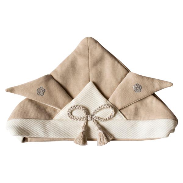 「晴れの日の和装スタイルに」節句のイベントや、記念日の撮影にぴったりのかぶれる布製兜です。しっかりした作りで自立するので、節句の飾りにもおすすめ。頭を締め付けすぎず、やわらかい素材感なので帽子が苦手なお子様にも。揺れるタッセルと組紐がアクセントになっています。袴シリーズや、お手持ちの和服と合わせたコーディネートがおすすめです。