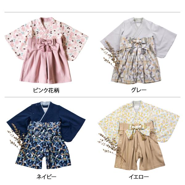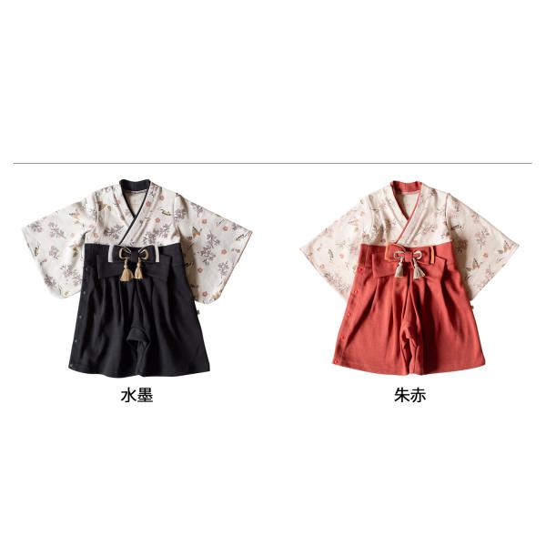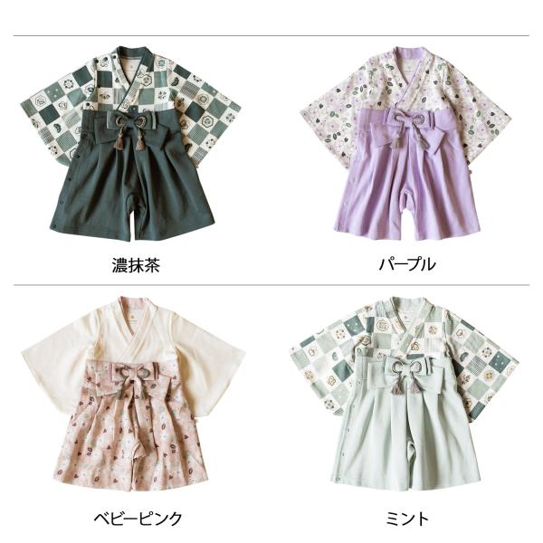 モクモフ mocmof 袴 ロンパース ベビー服 和服 男の子 100日祝 初節句 衣装 お食い初め お宮参 ベージュ レッド ブルー グリーン ピンク 622-456