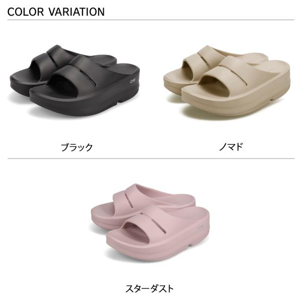 OOFOS ウーフォス リカバリースライドサンダル ウーメガ ウーアー レディース 厚底 OOmega OOahh ブラック ベージュ 黒 2000730 正規品