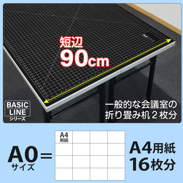 カッティングマット A0 サイズ 90cm x 120cm x 3mm 2cm方眼 特大 両面メモリ 業務用 カッターマット大判 デスクマット【ブラック / グレー】両面目盛り 切り出し