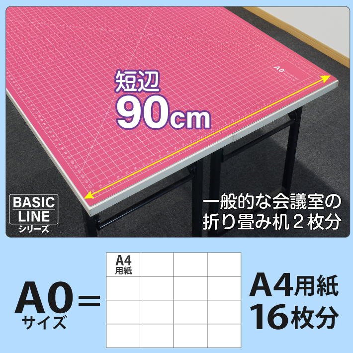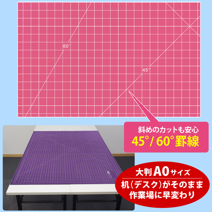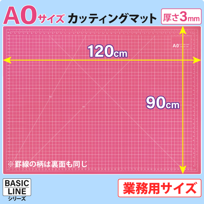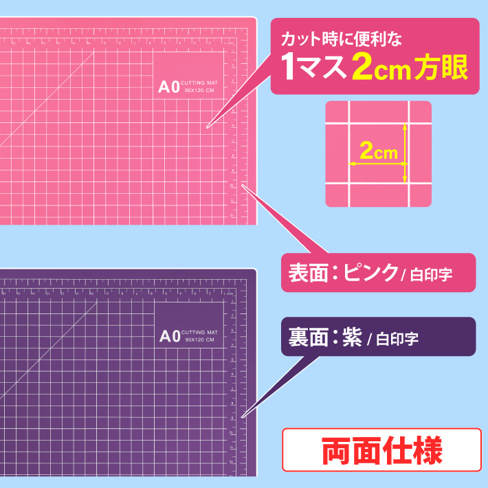 カッティングマット A0 サイズ 90cm x 120cm x 3mm 2cm方眼 特大 両面メモリ 業務用 カッターマット大判 デスクマット【ピンク / 紫】両面目盛り 切り出し