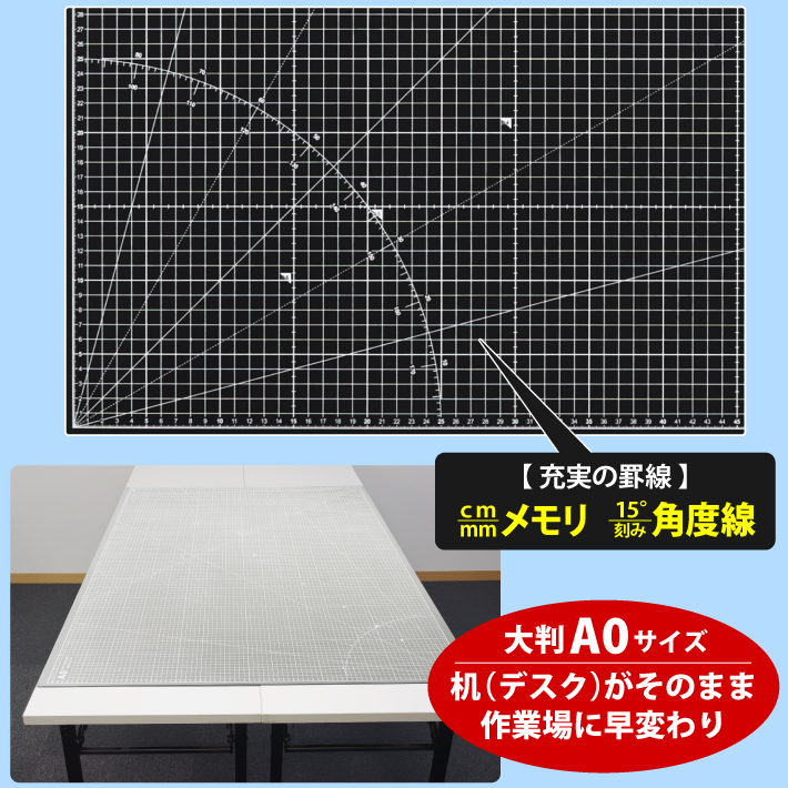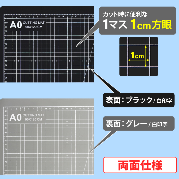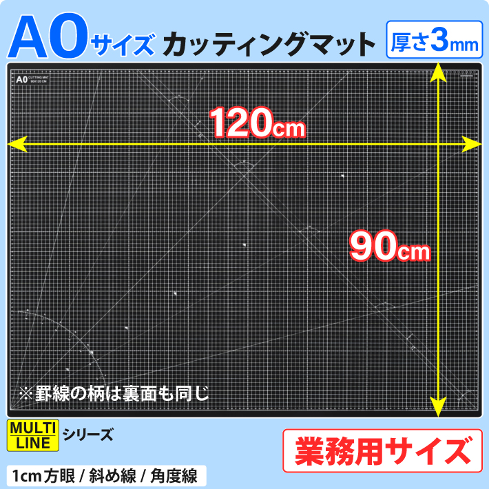 カッティングマット A0 サイズ 90cm x 120cm x 3mm 1cm方眼 特大 両面メモリ 業務用 工作 カッターマット大判 デスクマット 黒 ブラック 両面目盛り 切り出し