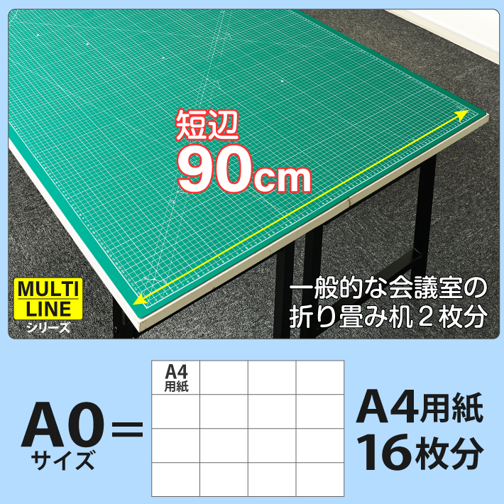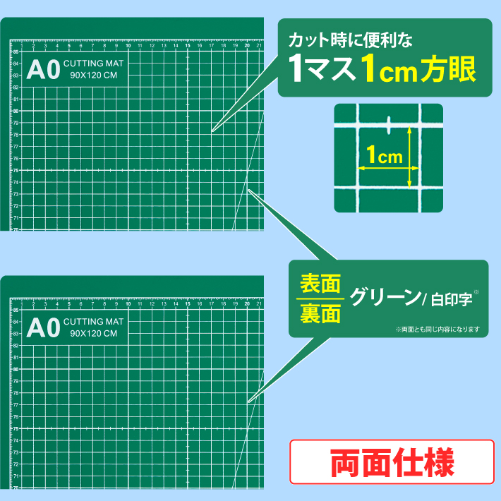 カッティングマット A0 サイズ 90cm x 120cm x 3mm 1cm方眼 特大 両面メモリ 業務用 工作 カッターマット大判 デスクマット 緑 グリーン 両面目盛り 切り出し