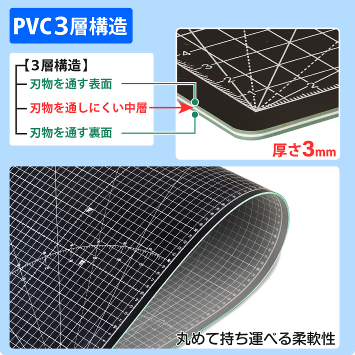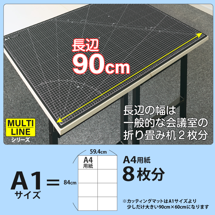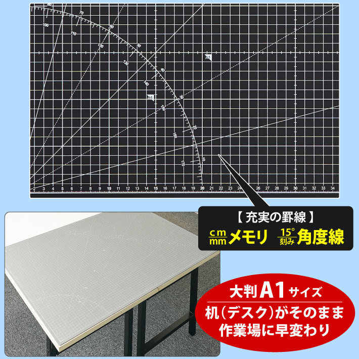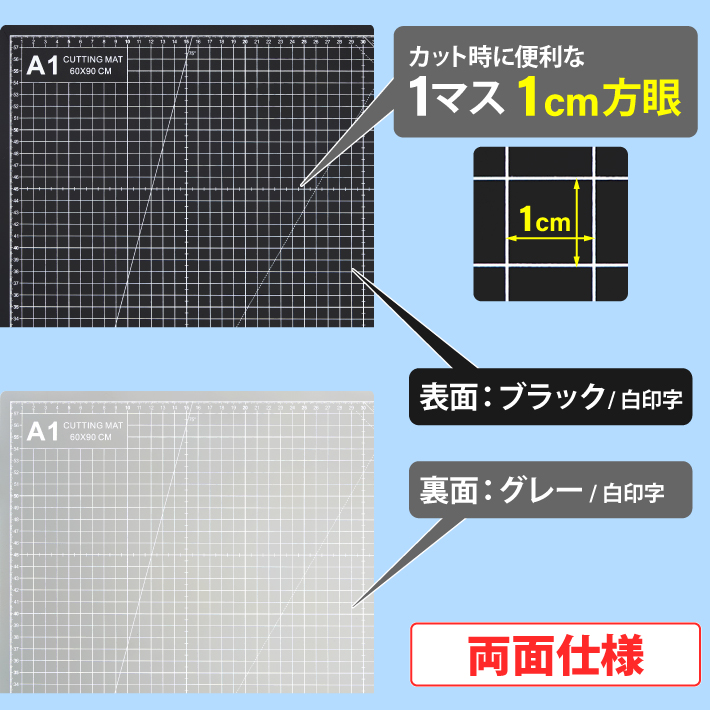 カッティングマット A1 サイズ 60cm x 90cm x 3mm 1cm方眼 特大 両面メモリ 業務用 工作 カッターマット大判 デスクマット 黒 ブラック 両面目盛り 切り出し