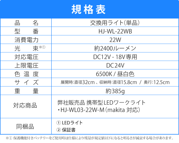 HEMAJUN 投光器 単品 led 折りたたみ投光器 マキタ と互換性あり 22W 2400lm 18V専用 6500K 作業灯 ライト 充電式 スイッチ付 屋外 昼光色
