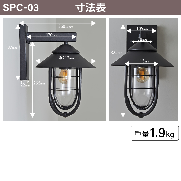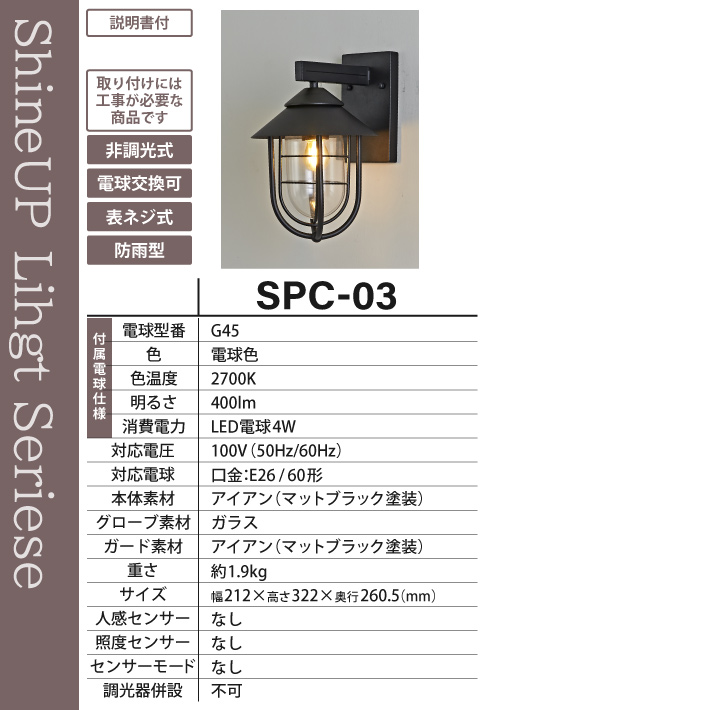 玄関灯 ポーチライト 防雨 外灯 玄関 LED 照明 門柱灯 庭用 壁掛けライト ブラケットライト おしゃれ PSEマーク取得 SPC-03