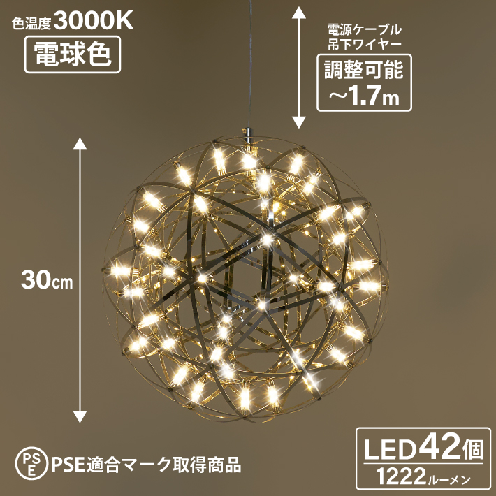 ShineUP ペンダントライト 30cm 球体 LED 天井 吹き抜け 照明 シーリングライト 新居 新築 シンプル 吊り下げ シャンデリア おしゃれ 北欧 電球色 3000K