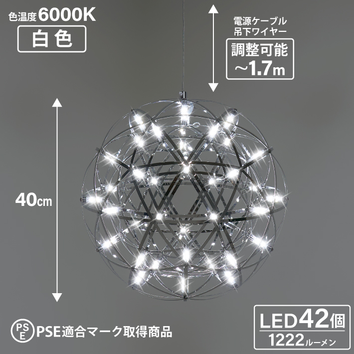 ShineUP ペンダントライト 40cm 球体 LED 天井 吹き抜け 照明 シーリングライト 新居 新築 シンプル 吊り下げ シャンデリア おしゃれ 北欧 白色 6000K