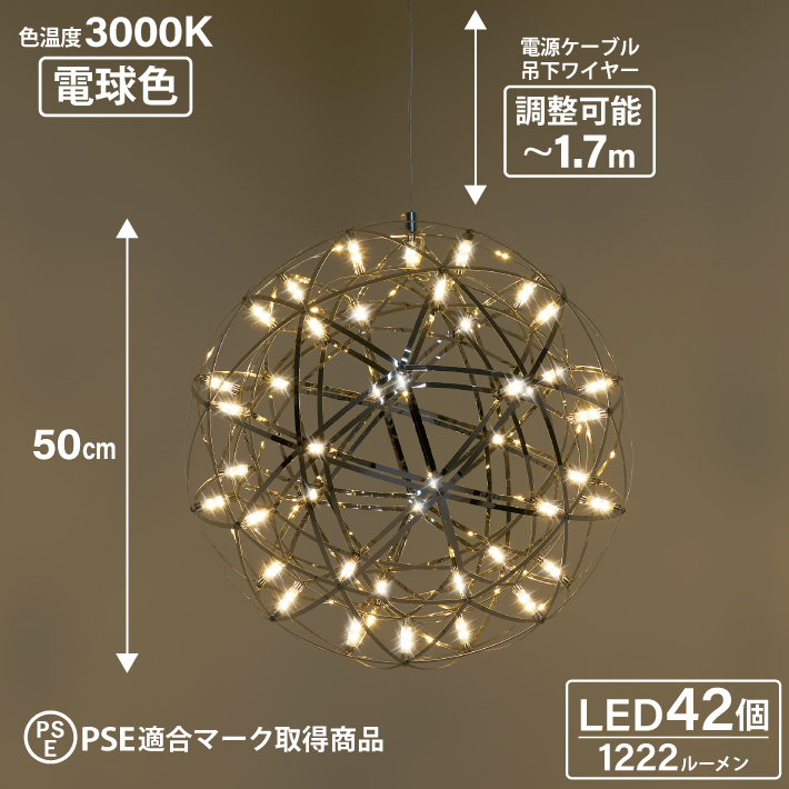 ShineUP ペンダントライト 50cm 球体 LED 天井 吹き抜け 照明 シーリングライト 新居 新築 シンプル 吊り下げ シャンデリア おしゃれ 北欧 電球色 3000K