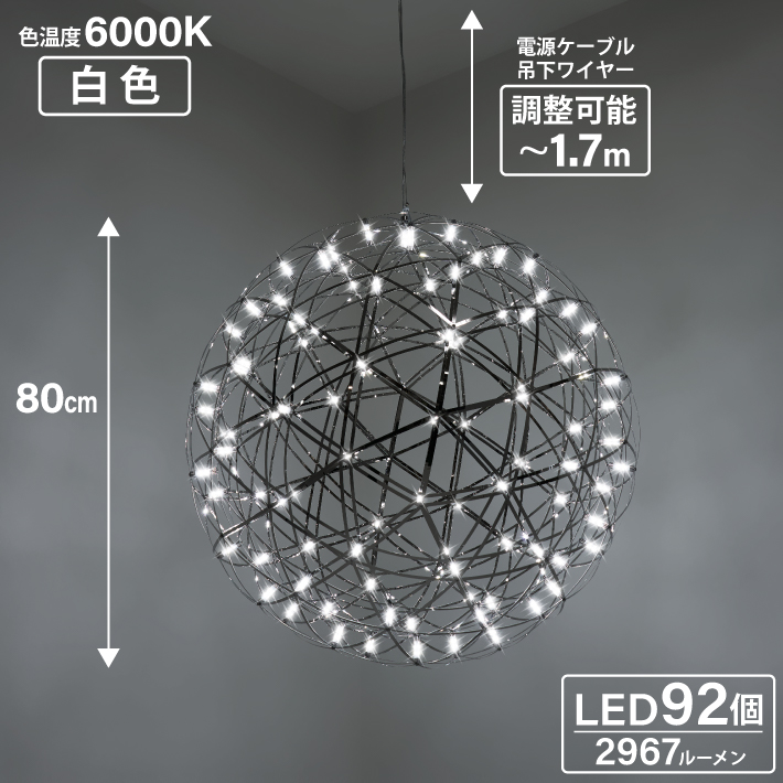 ShineUP ペンダントライト 80cm 球体 LED 天井 吹き抜け 照明 シーリングライト 新居 新築 シンプル 吊り下げ シャンデリア おしゃれ 北欧 白色 6000K