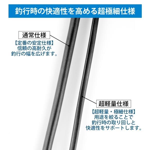 ・超軽量、極細仕様のため、釣行時の取り回しと快適性をサポートします。